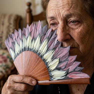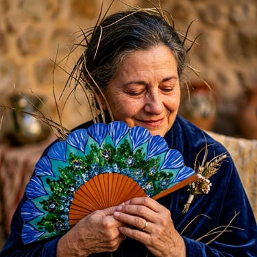 Piezas pintadas a mano cuidadosamente recortadas, transformando la forma tradicional en algo vivo, único e irrepetible. El borde deja de ser límite para convertirse en gesto artístico, en movimiento, en identidad. No hay moldes. No hay repeticiones. Cada abanico existe una sola vez.