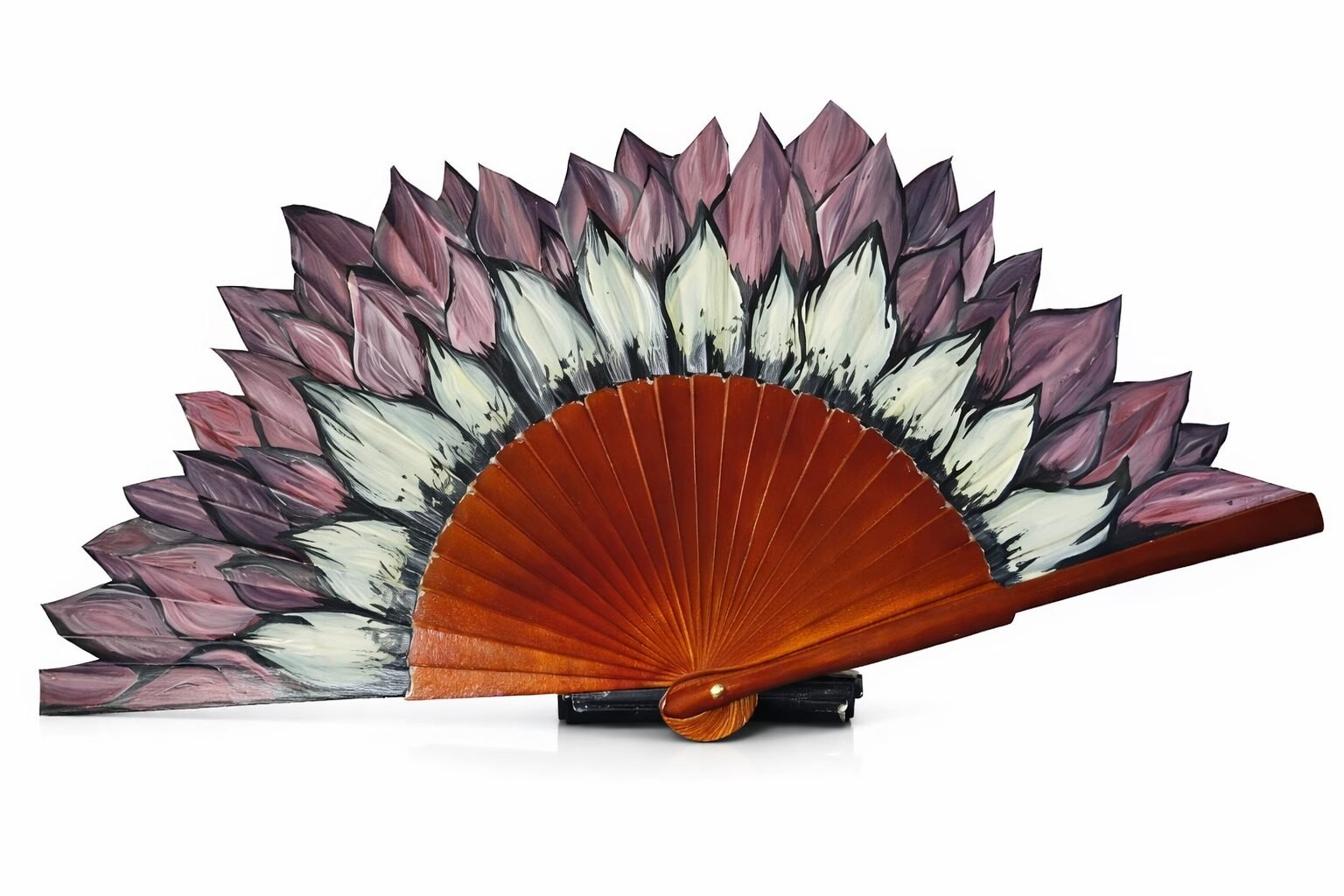 Cada pétalo ha sido recortado manualmente uno a uno, transformando el abanico en una estructura viva, orgánica, casi escultórica. No sigue la silueta tradicional. La rompe. La redefine.